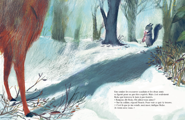 Les animaux font preuve d’amitié et d’entraide, ils arriveront tous au sommet pour observer avec émerveillement ce qu’indiquait cette belle lumière : une toute petite pousse verte qui annonce le printemps.
