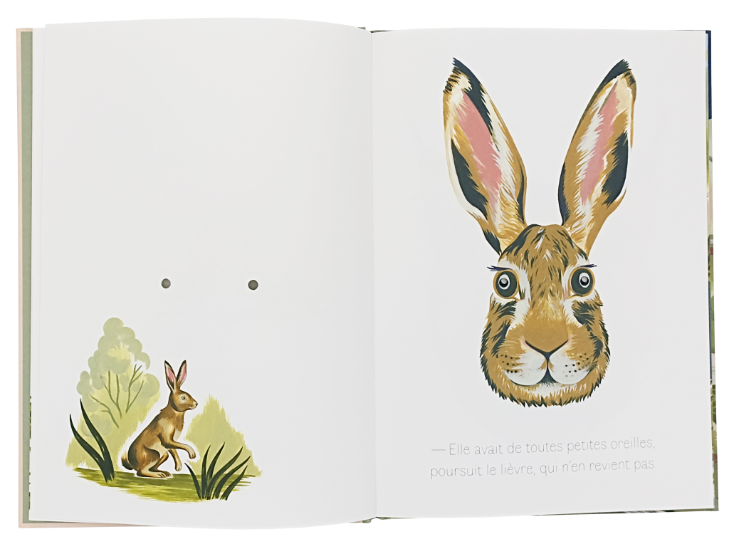 « Elle avait de toutes petites oreilles », dit le lièvre, « un tout petit museau », précise le sanglier, « pas l’ombre d’une moustache », indique le lynx, et « une toute petite bouche », renchérit le crapaud. »